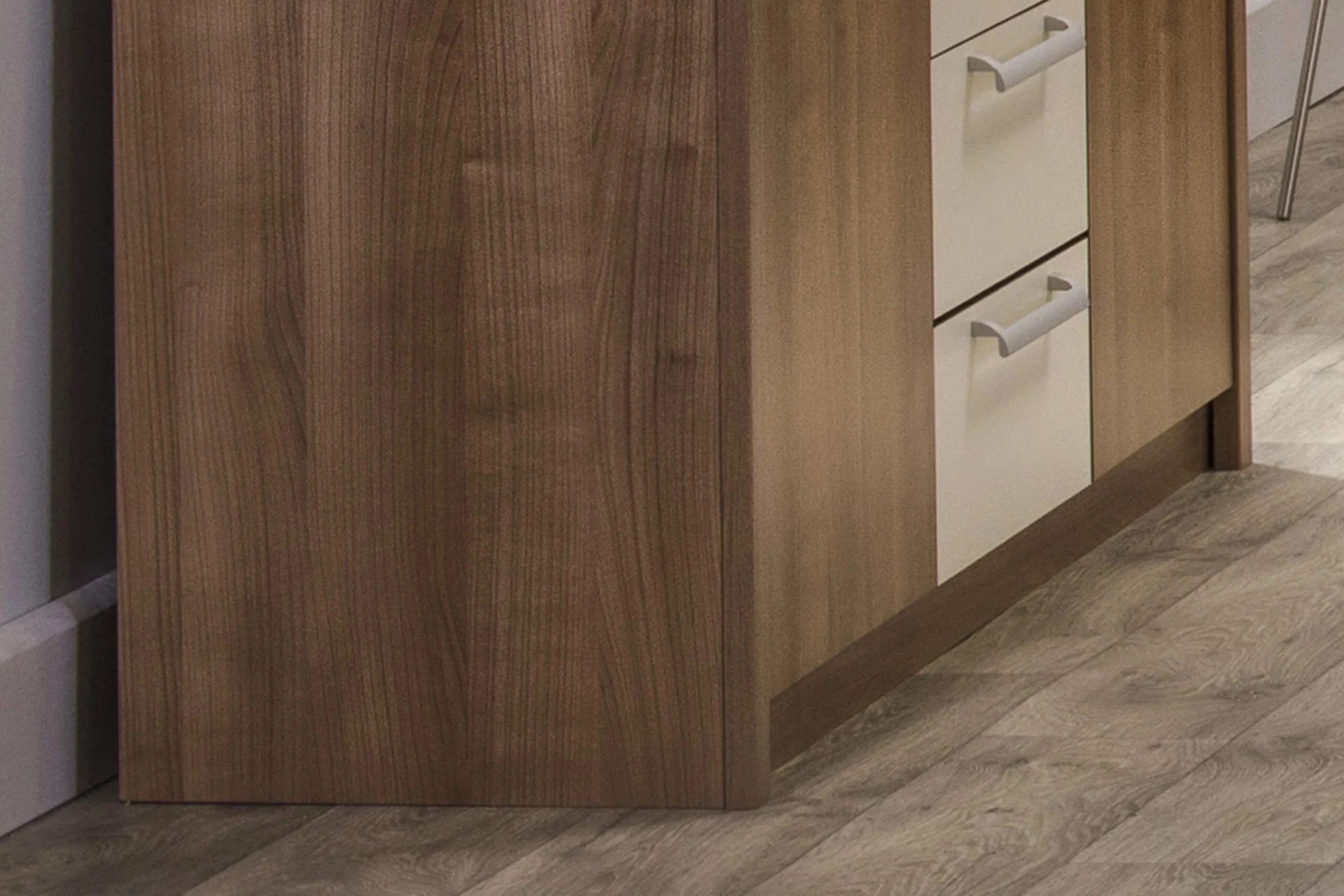 The cherry tone combined with the beige color on the Keln dresser will bring harmony to your intimate corner. The basic material for making the structure and door is refined MFC in a cherry pattern. The front part of the drawers is made of refined beige MFC. On the pages are decorative moldings, which are made of MDF covered with foil with a cherry texture.