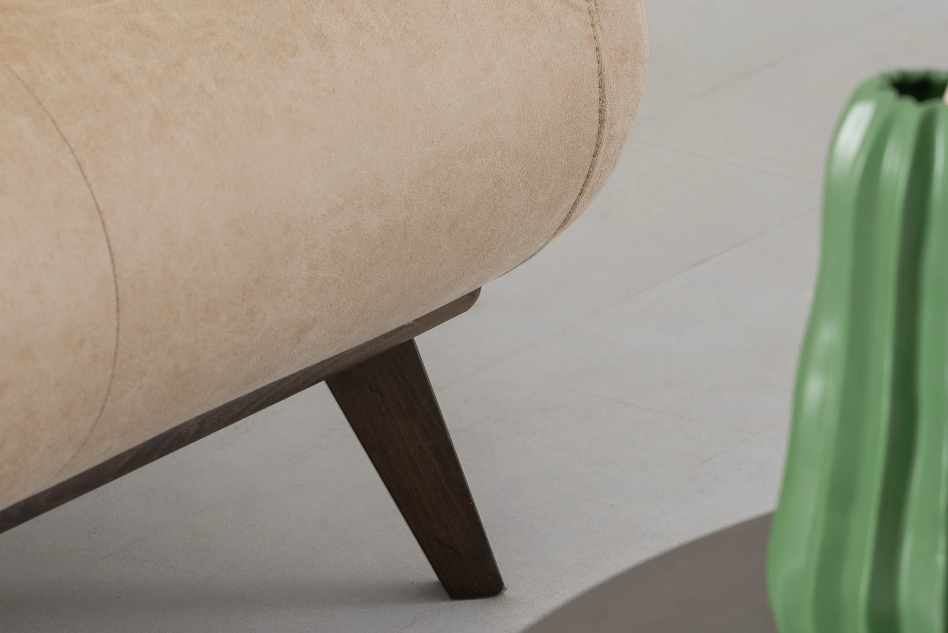Kairo three-seater is made of quality materials that give it durability and stability. The wooden structure is made of beech sawn timber, chipboard, plywood, MDF and hardboard. The combination of spacious and modernly designed seats, which basically have an elastic belt and HR foam filling with a soft PU foam backrest, will provide your body with perfect support. The casual retro style is complemented by a wooden frame and legs made of high-quality beech wood.