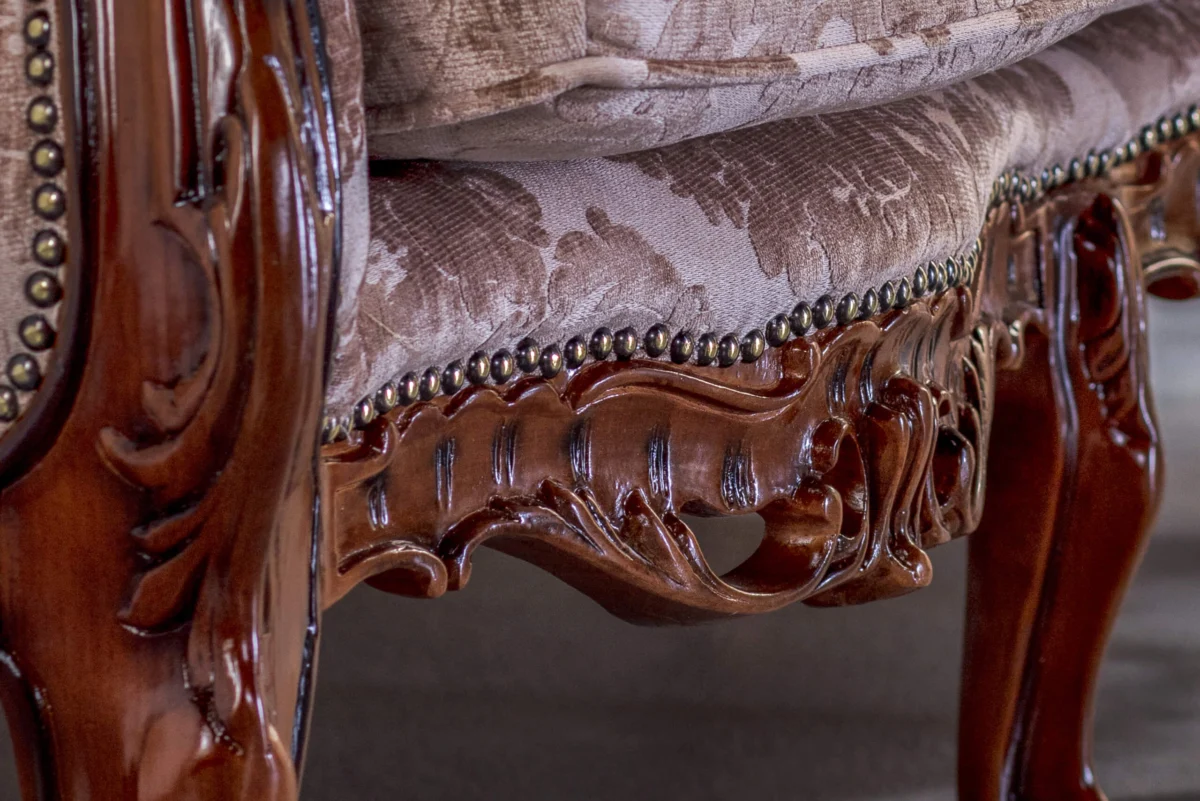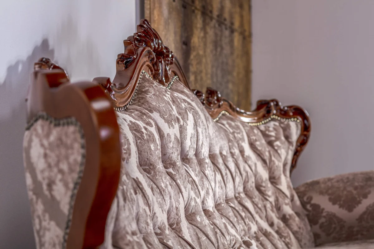 There are many authentic details on this model, from decorative carved elements on a wooden frame, wavy legs, rounded armrests to decorative threads and decorative buttons. Through the harmony of shapes and materials, everything exudes a special stylistic expression. The sumptuous look is accompanied by the pleasure of comfort.
