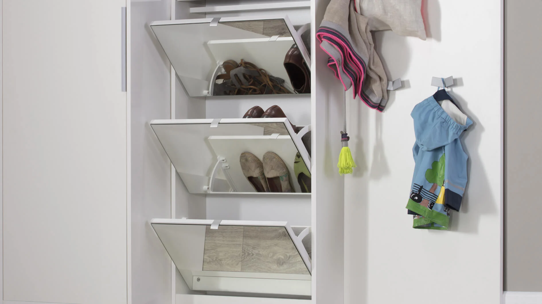 Modernly designed, the shoe racks from our offer will fit nicely into any style of hallway decoration, from classic to modern. They are available in different sizes, with options for storing shoes in one or two rows depending on the model.
