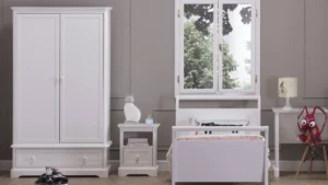 Glorija ormar je sastavni deo Glorija sobe za decu i mlade. Zajedno sa krevetom, komodom i noćnim stočićem predstavlja kompletno rešenje za opremanje dečijeg kutka.