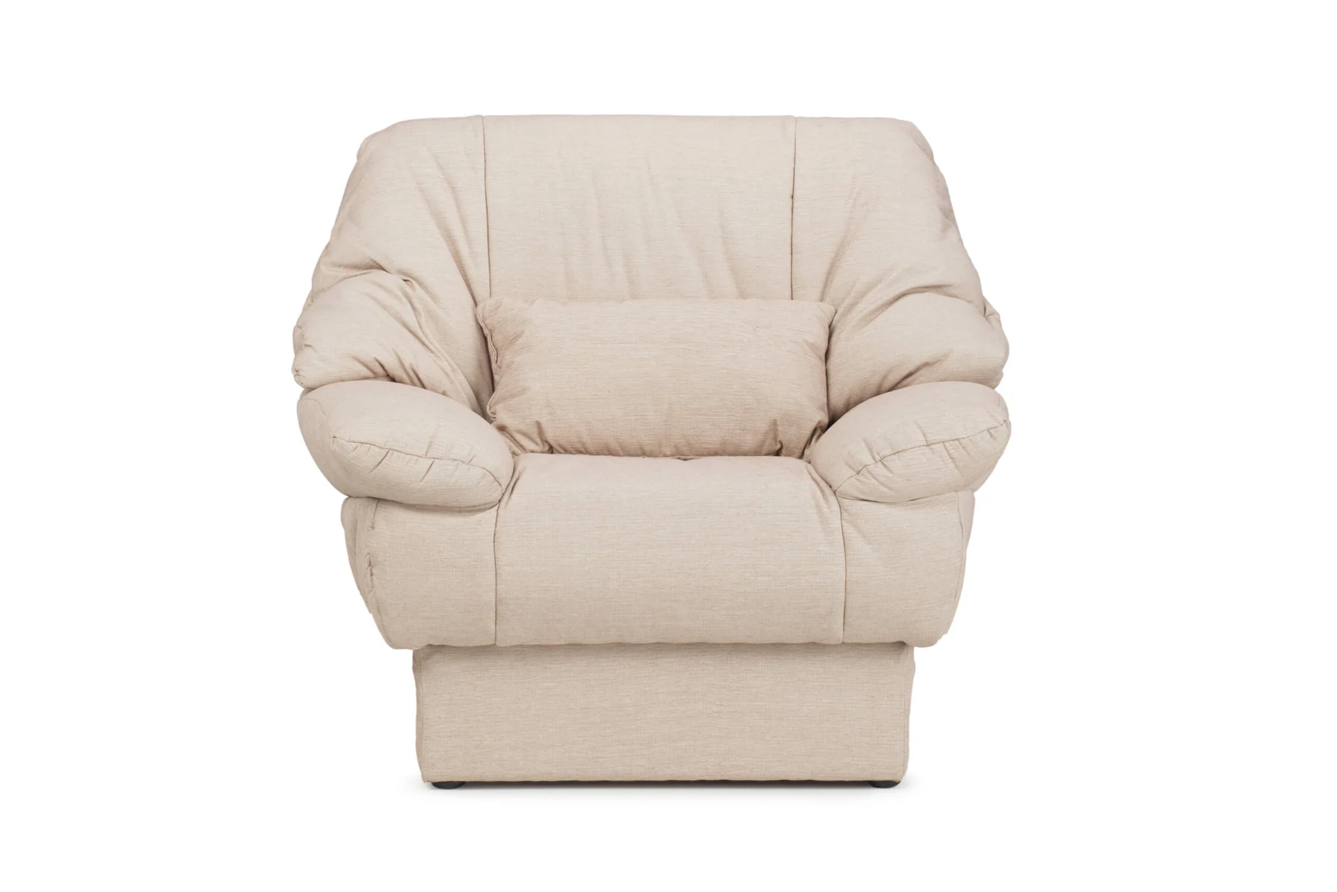 Nevena fotelja obložena mekanom, pufnastom presvlakom i jastucima, mami vas da se u nju udobno smestite i dugo odmarate. Dizajnirana je tako da vašem telu pruža neophodan odmor, a kičmi savršenu potporu zahvaljujući dodatnom jastuku koji možete namestiti iza leđa.