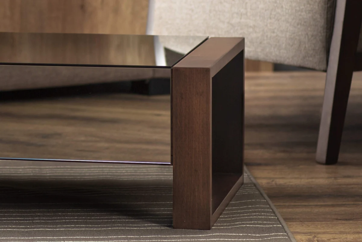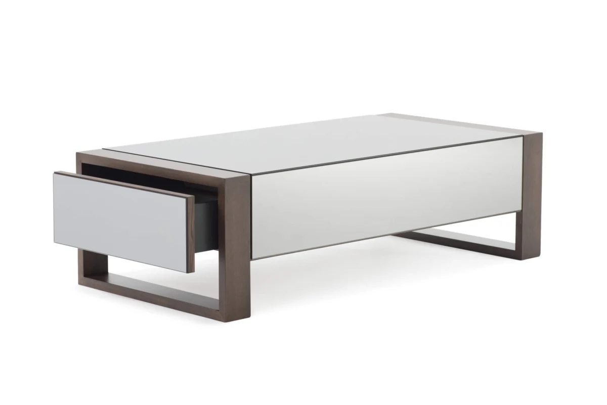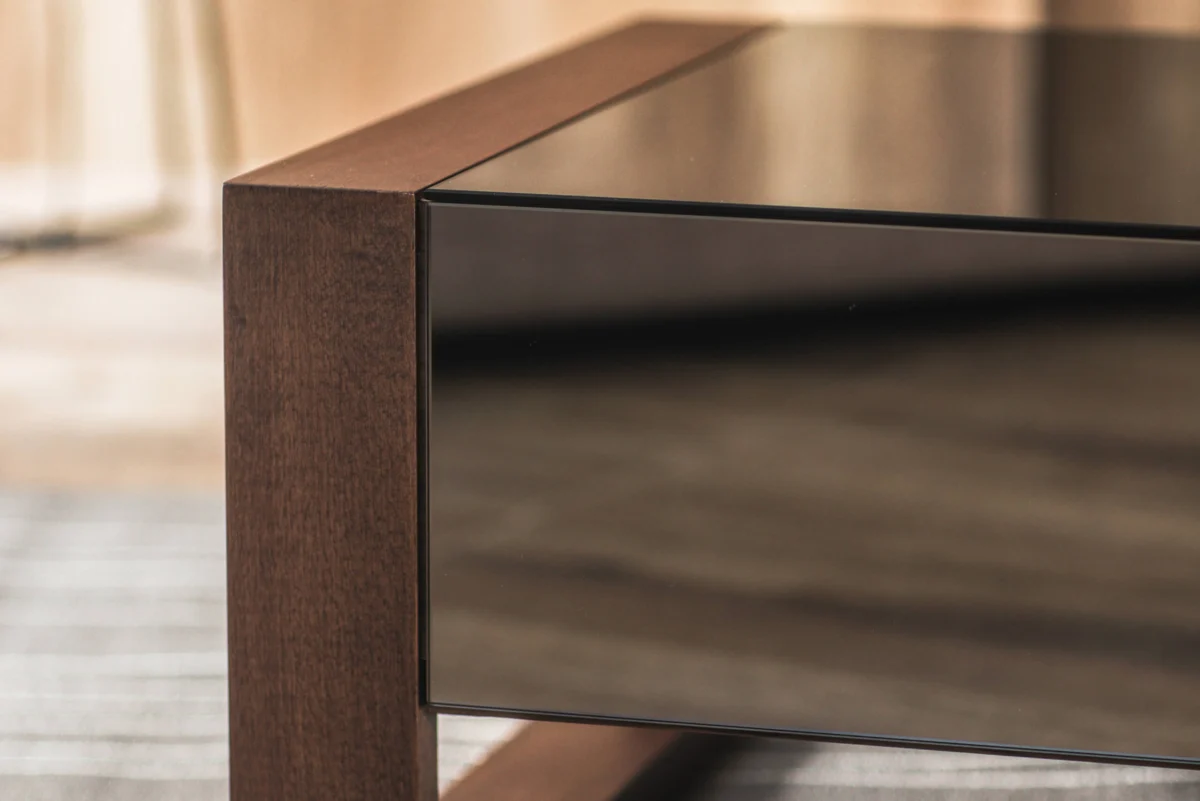 Ovaj klub sto pravougaonog oblika prekriven toniranim ogledalom koje suptilno reflektuje svetlost, savršen je dekorativni komad nameštaja. U kombinaciji sa nogama od punog bukovog drveta u boji čokolade oplemenjuje i čini vaš prostor nesvakidašnjim.