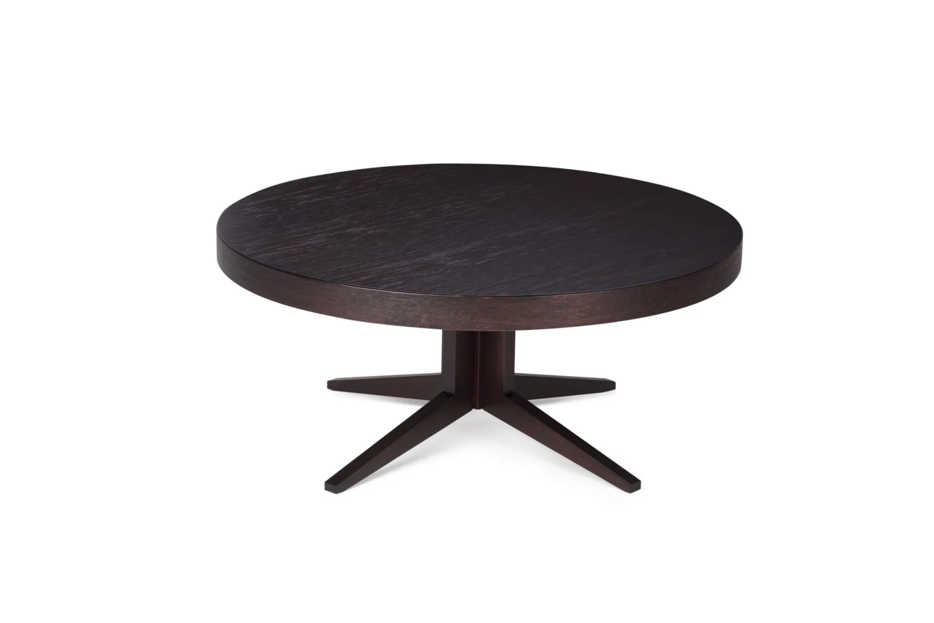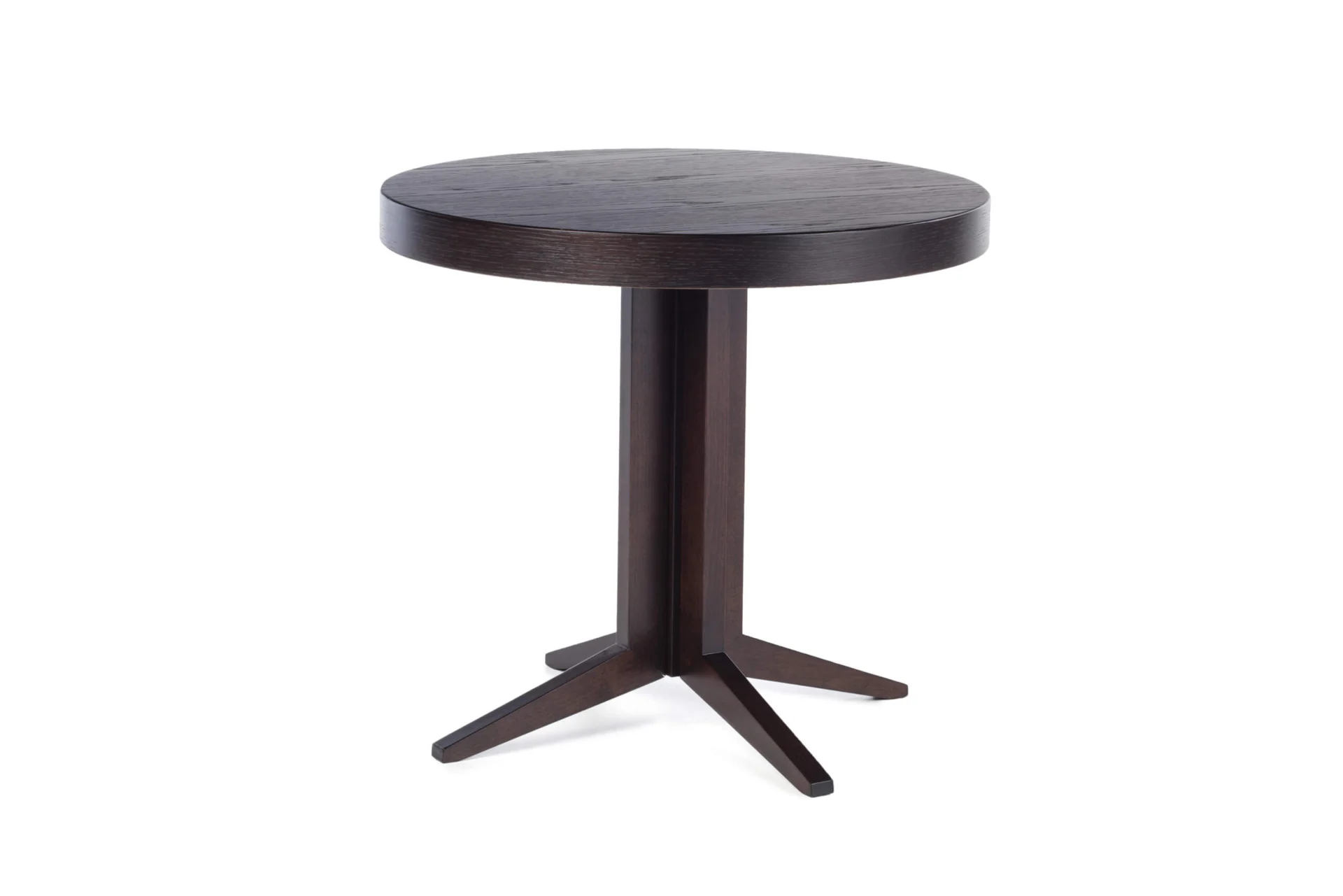 Lira klub sto sa pločom kružnog oblika ima elegantnu nogu od punog drveta sa četiri stope.