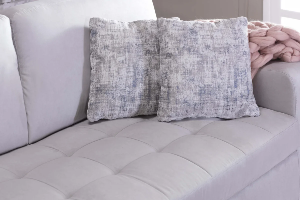Contessa ugaona garnitura šarmantna je poput svog imena. Blago zaobljeni rukonasloni, ukrasni štepovi na jastucima sedišta, dekorativni jastuci i metalne noge čine je posebnom. Odlikuje je prefinjena estetika praćena balansom udobnosti i funkcionalnosti.